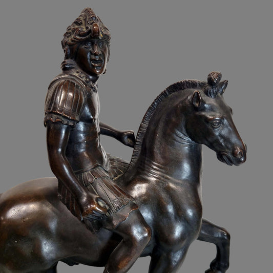 Antique Bronze Equestrian Group of the Shouting Horseman