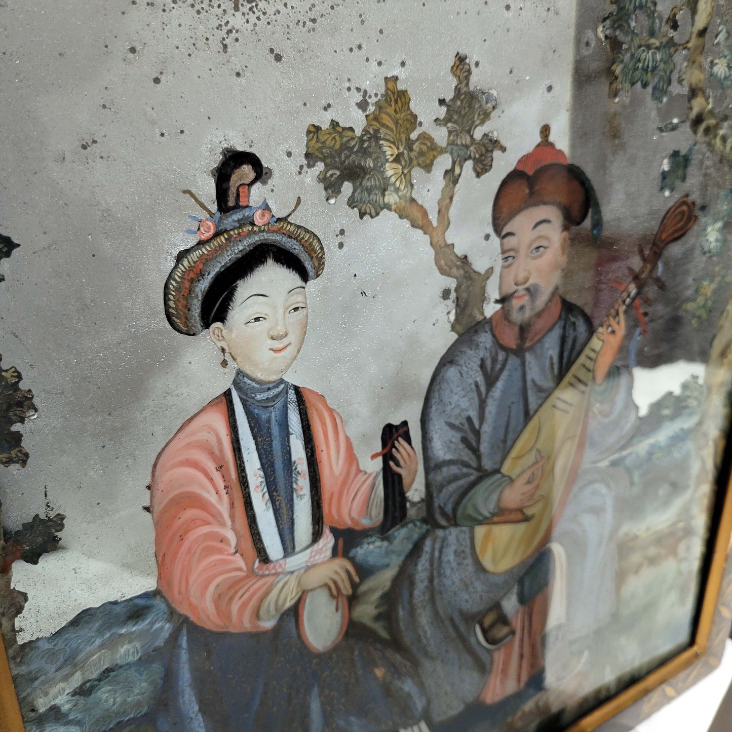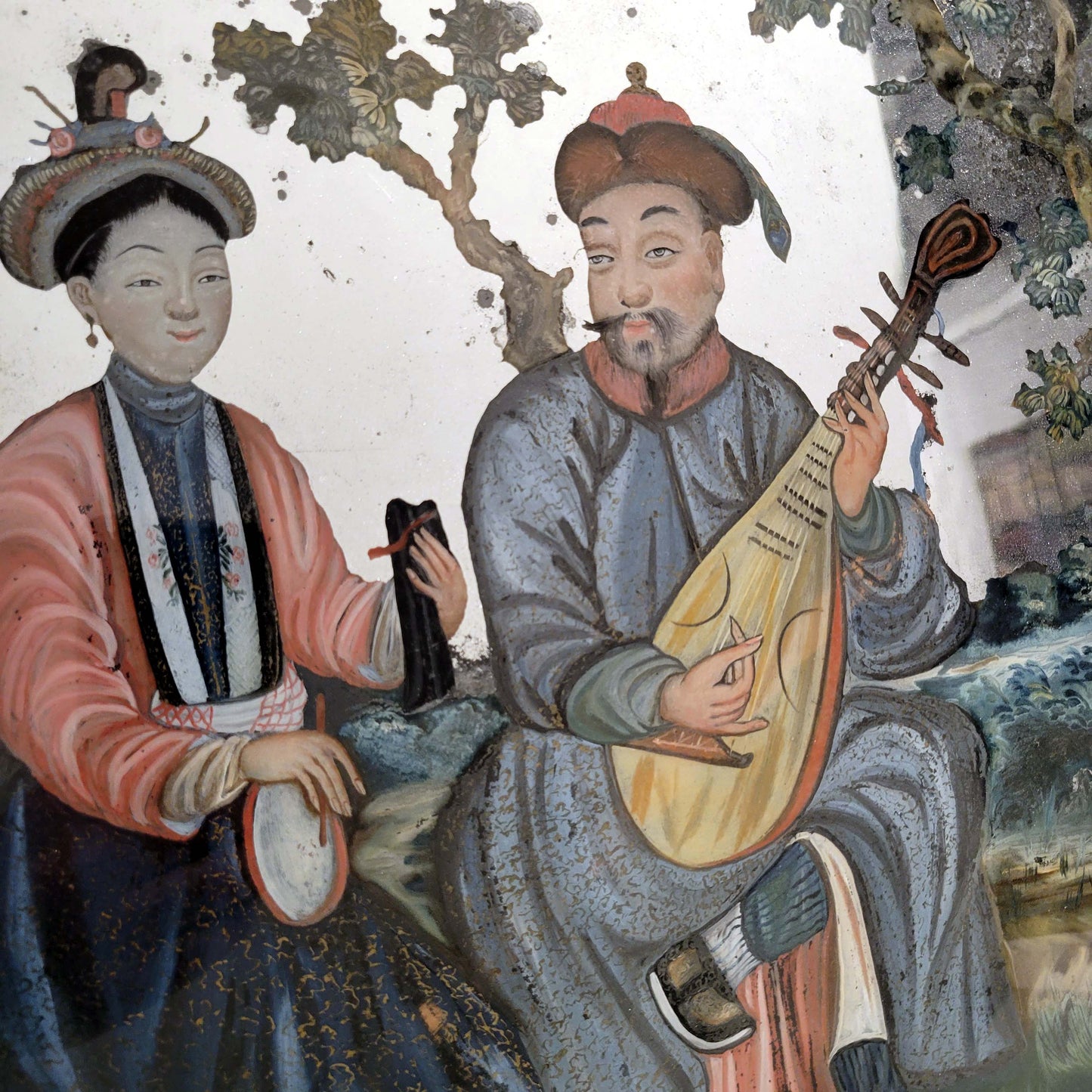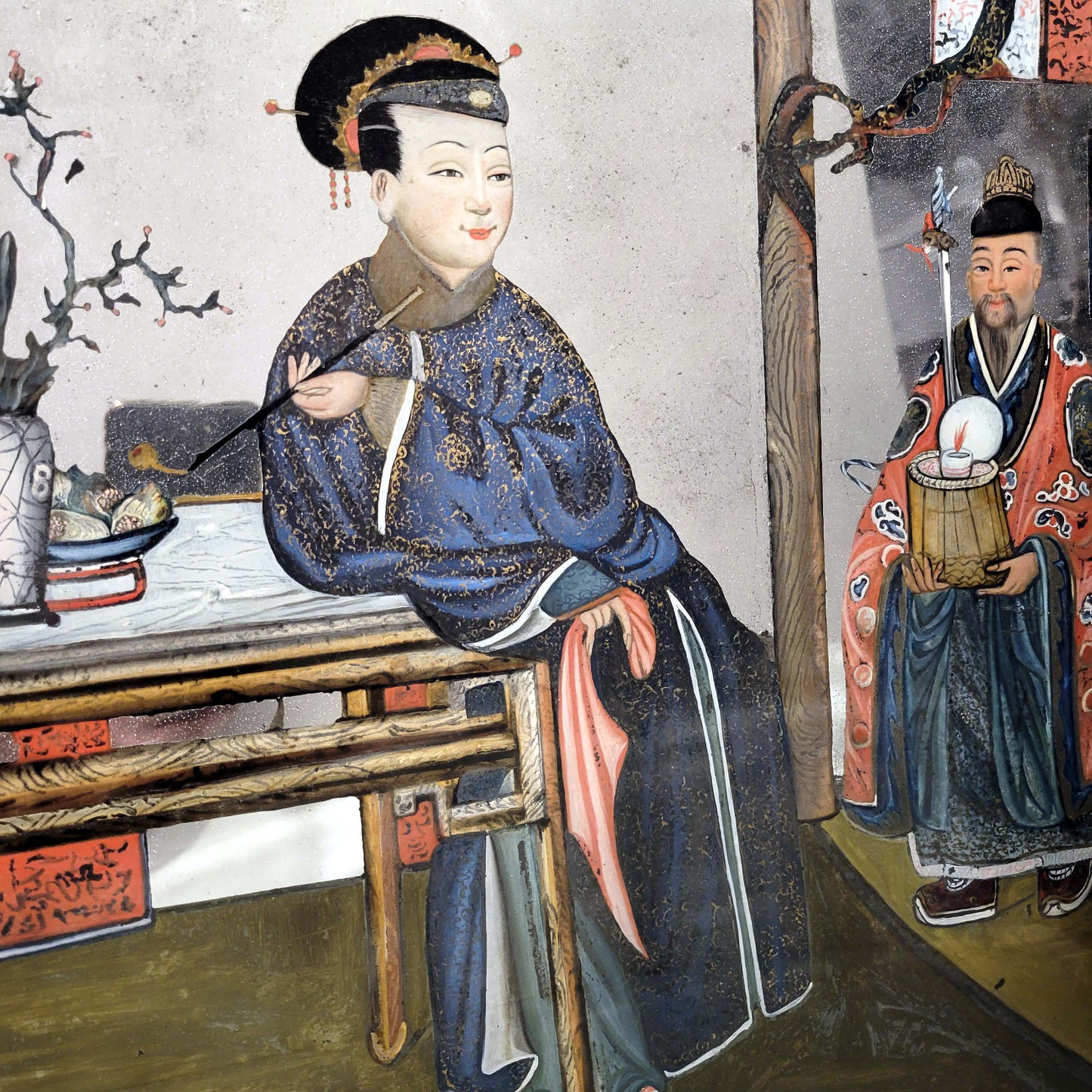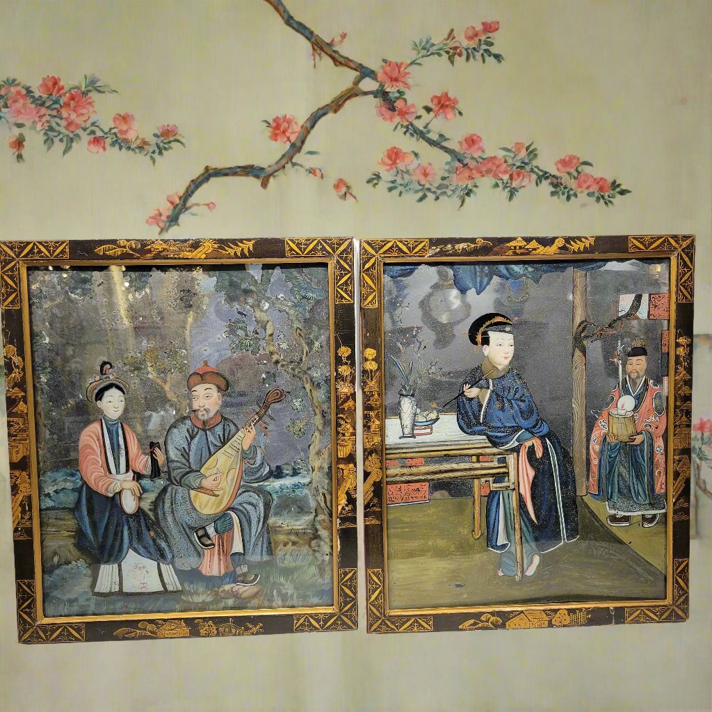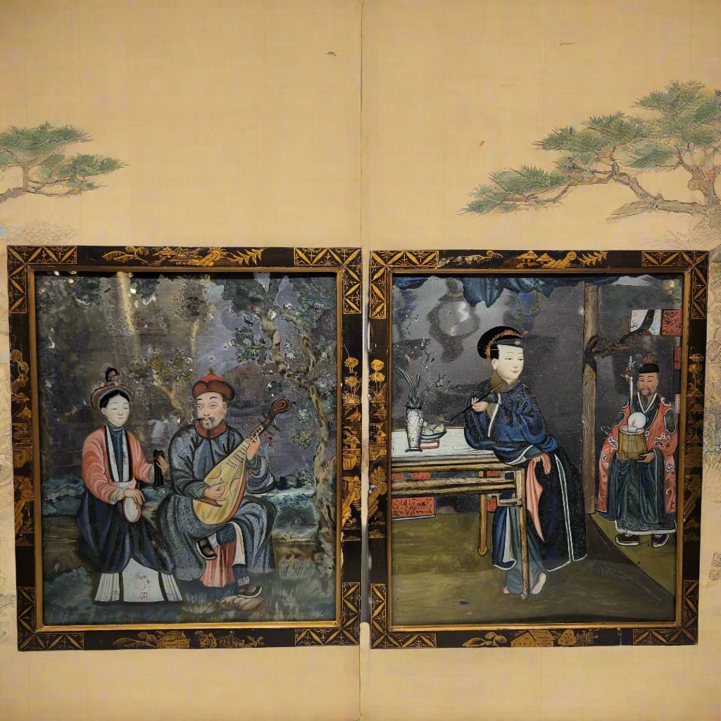 Pair of Chinese Export Reverse Glass Paintings, Qing Dynasty, 18th Century