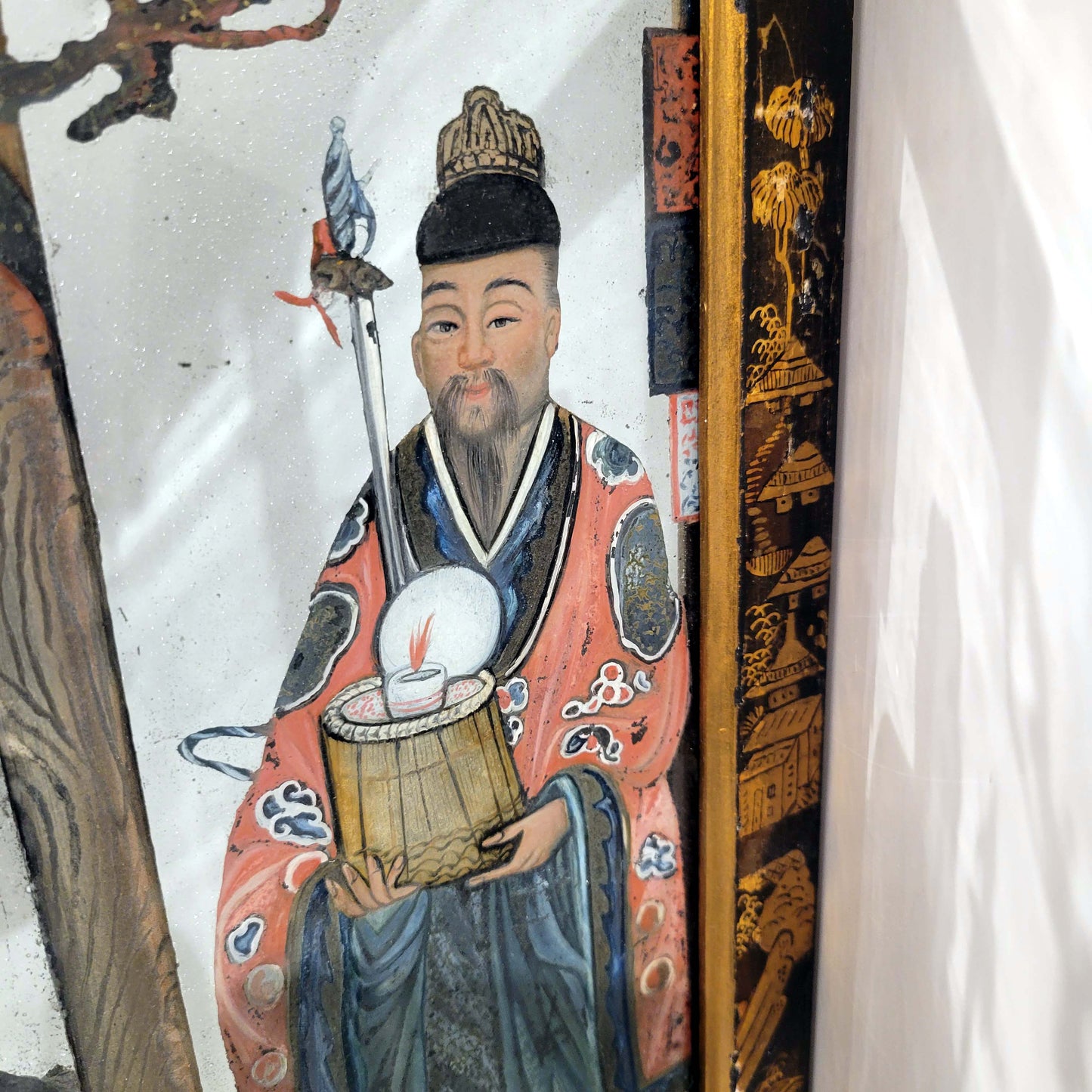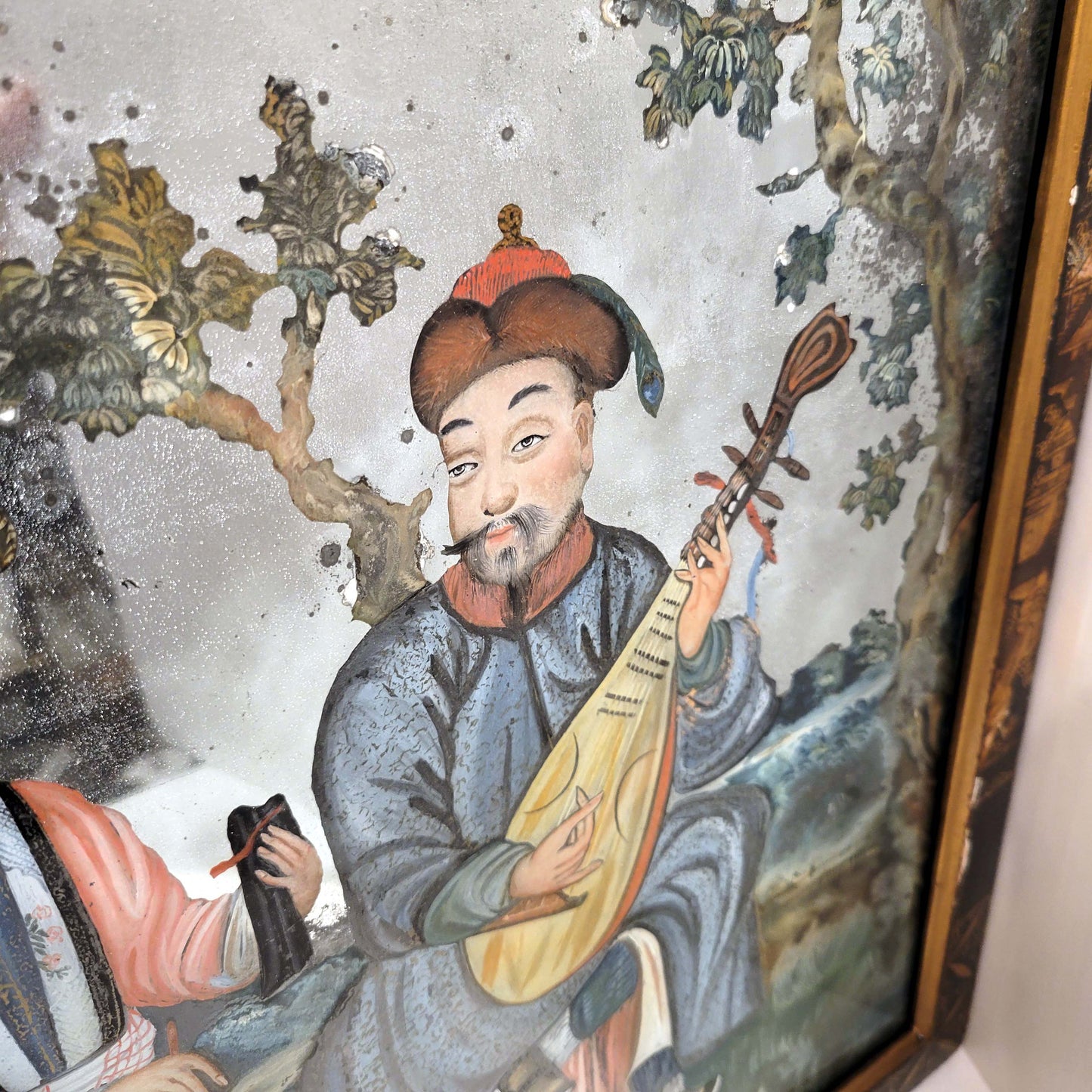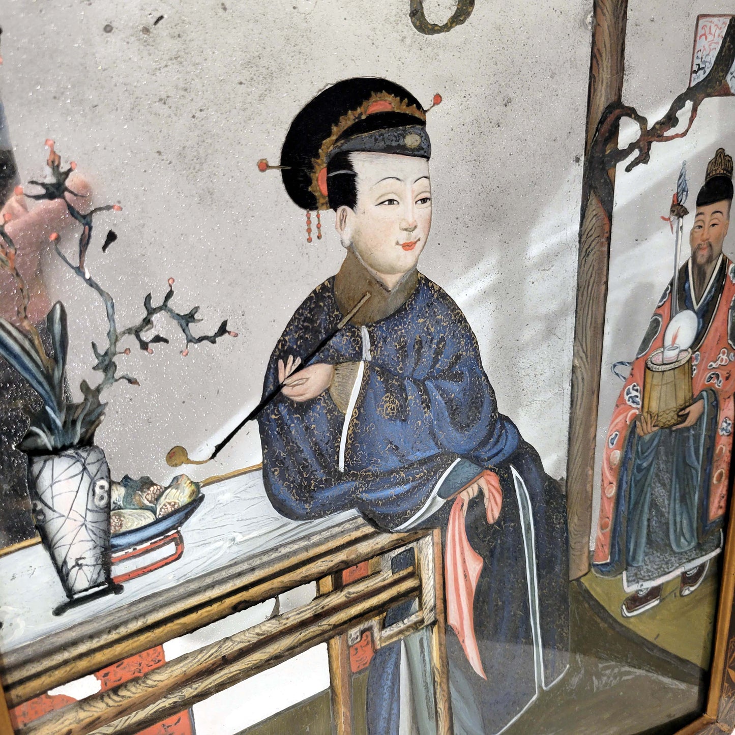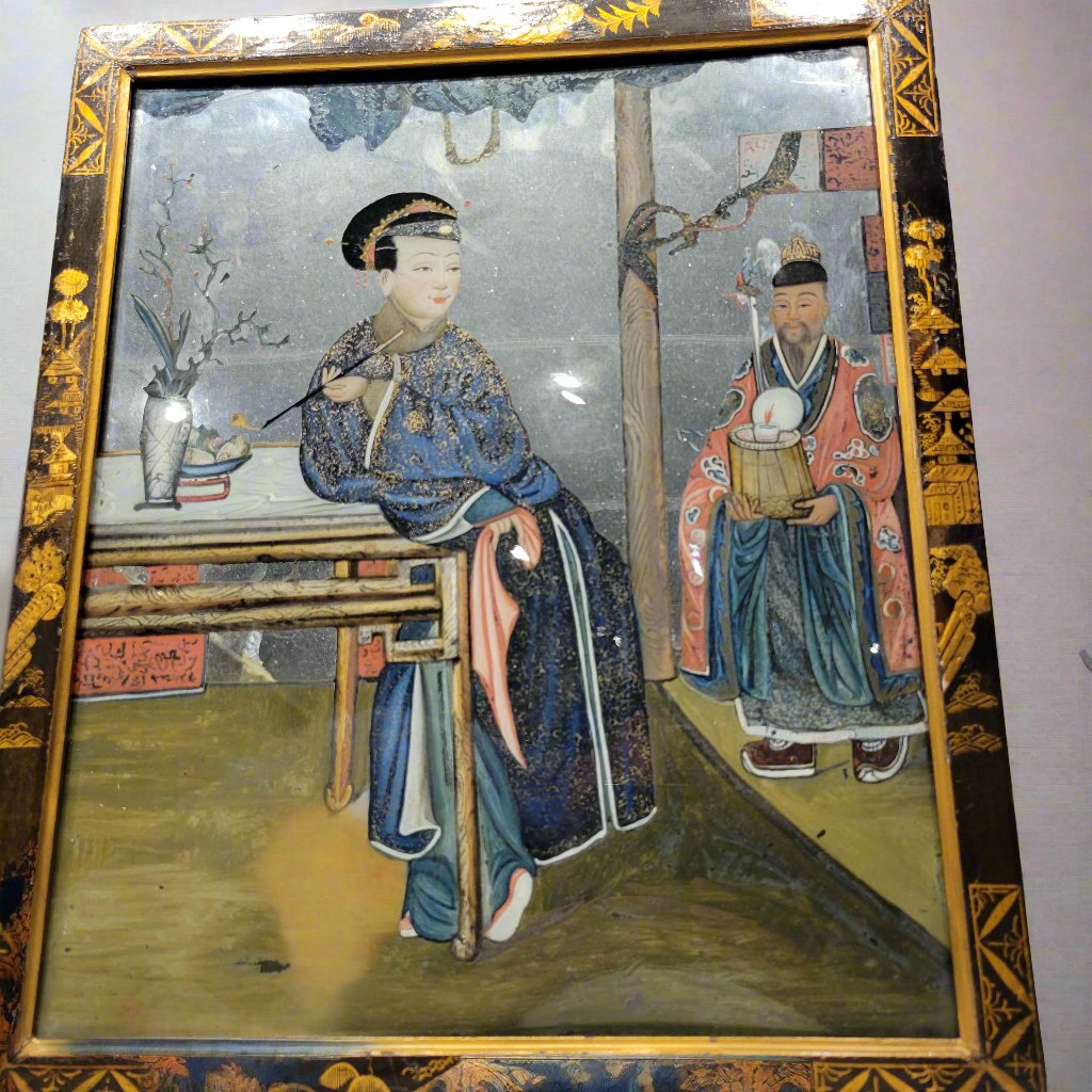 Pair of Chinese Export Reverse Glass Paintings, Qing Dynasty, 18th Century